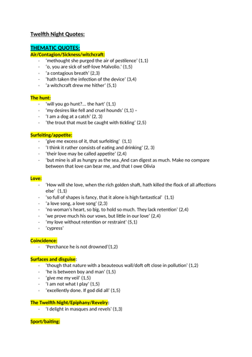 The plays opening speech includes one of its most famous lines as the unhappy lovesick orsino tells his servants and musicians if music be the food of love play on in the speech that follows orsino asks for the musicians to give him so much musical love food that he will overdose surfeit and cease to desire love any longer. Self love motivates various behaviors on the parts of these characters and helps to move the plays plot along. Twelfth night is full of literary references including allusions to shakespeares own dramatic works.